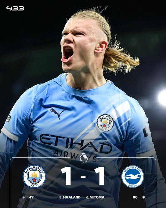 北京时间1月8日03:30,英超联赛第21轮,曼城坐镇伊蒂哈德球场迎战布莱顿。上半场,多库造点,哈兰德点射首开纪录。曼城半场1-0领先布莱顿。下半场,三笘薰扳平比分,B席有一脚射门击中立柱。最终曼城1-1战平布莱顿,联赛遭遇三连平,曼城先赛情况下暂落后榜首5分。