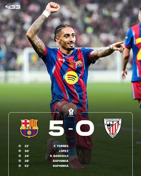 西超杯 巴塞罗那 5-0 毕尔巴鄂竞技